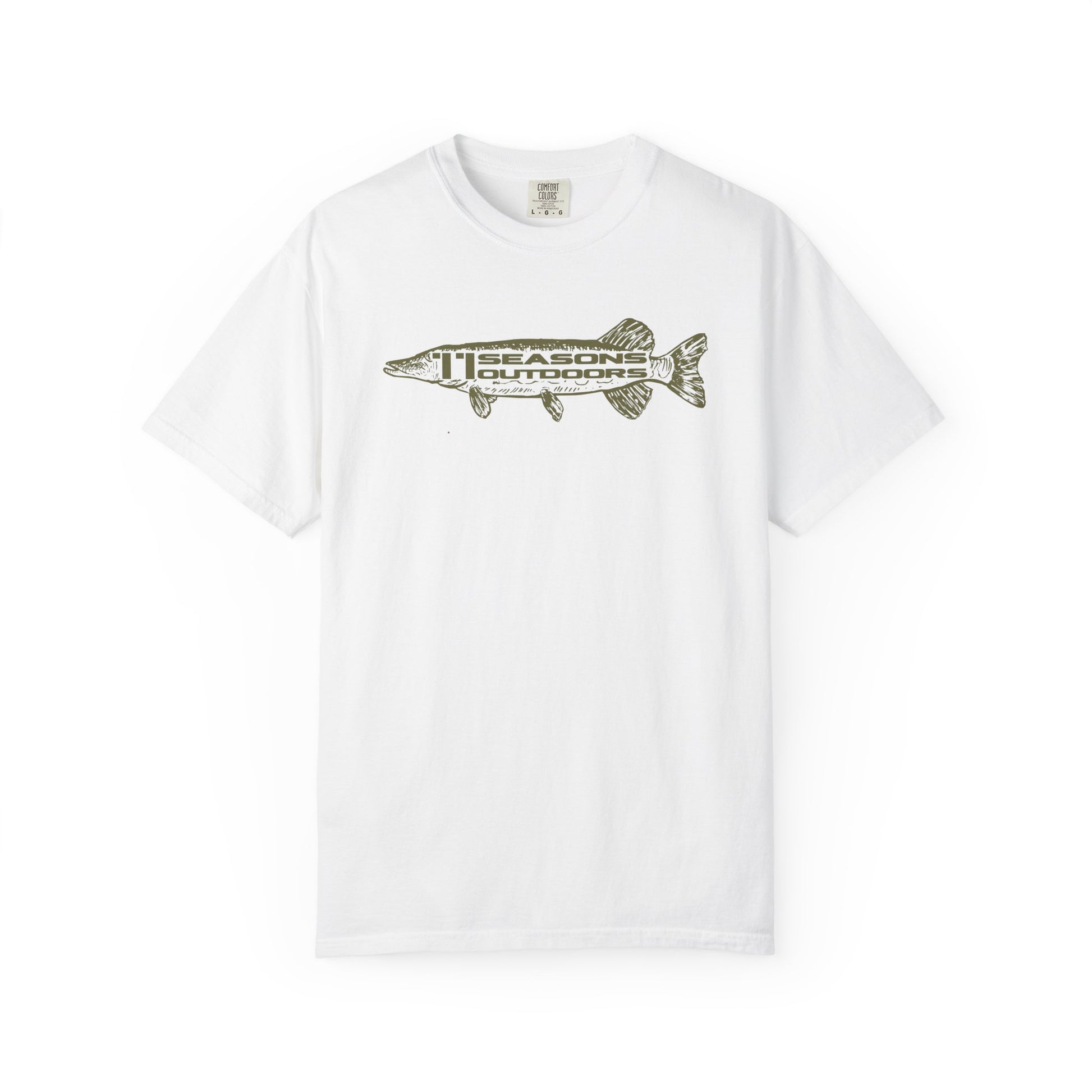 While we love all kinds of fishing, we don't see enough graphic tees representing Northern Pike. We fitted our brand name inside this hand sketched Northern Pike to create a cool piece of logo wear for anyone who enjoys Pike fishing as much as we do. (By hand-sketched we mean Michaela really spent hours hand-sketching this one).
